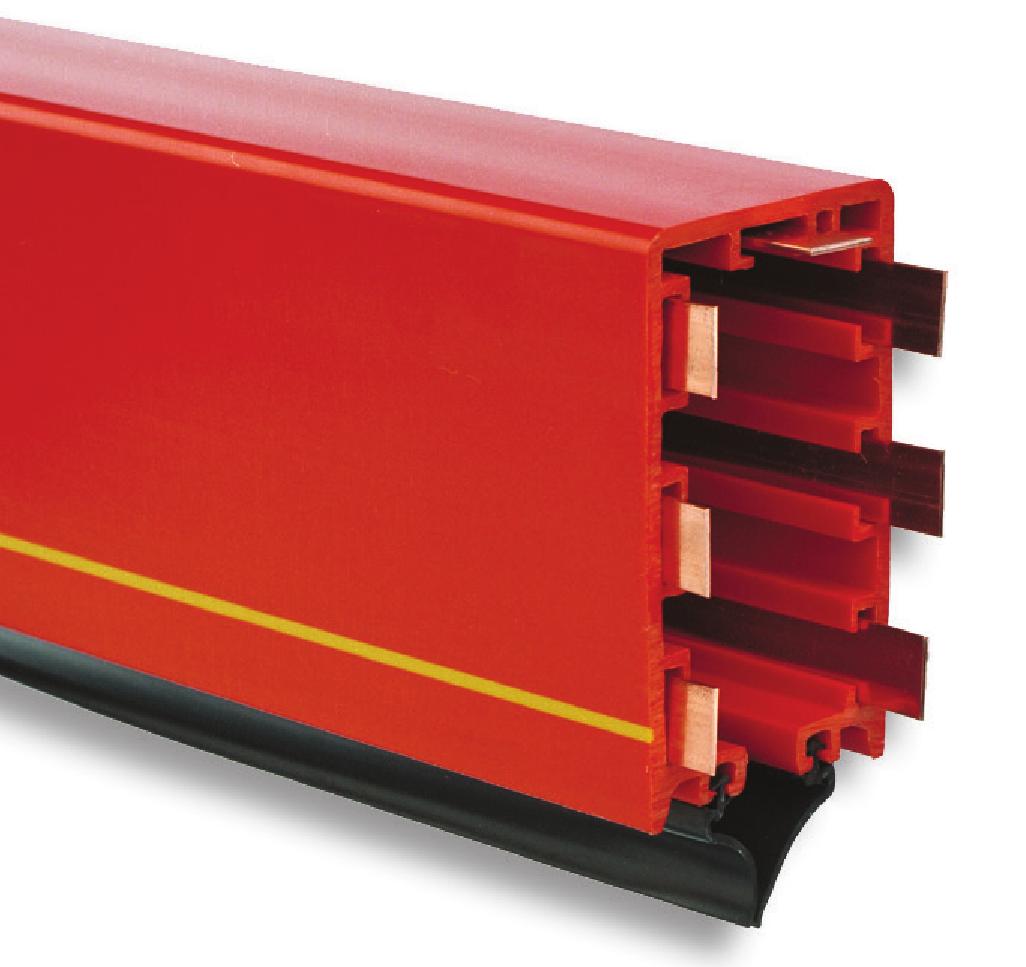 Минимальное падение напряжения. Отсутствие стыков в проводящих медных шинах позволяет избежать падения напряжения в местах стыковки, вследствие коррозии или недостаточно прочного соединения. Подпружиненные щетки токосъемника позволяют избежать скачков напряжения при движении.